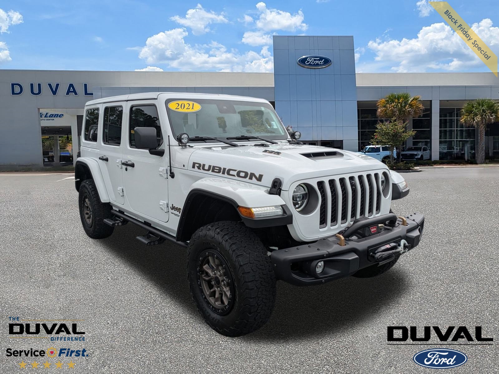 Experience legendary Jeep performance with this 2021 Jeep Wrangler Unlimited Rubicon 392 in Bright White Clearcoat, available now at Duval Ford in Jacksonville, FL. Combining track-inspired power, rugged 4×4 capability, and premium interior refinement, this Rubicon 392 is built for adventure and style.